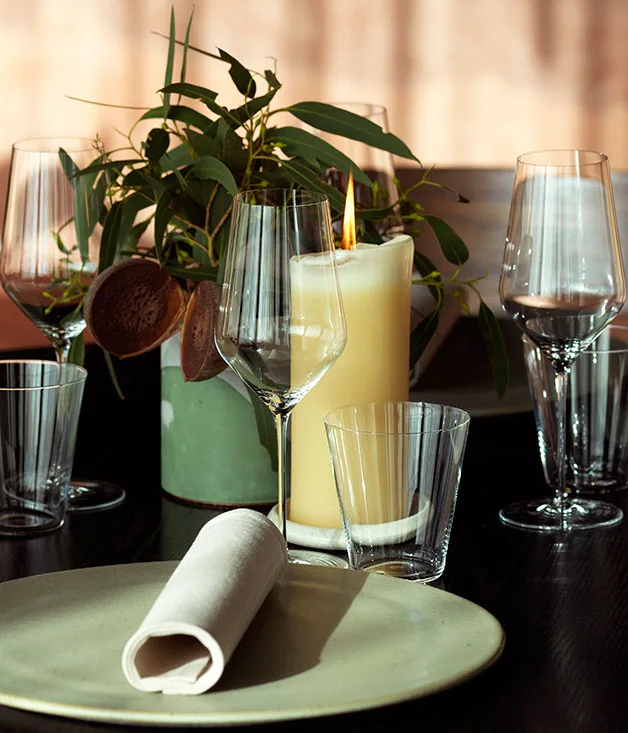 The chairs are classic Danish, designed by Hans J Wegner for Carl Hansen & Søn, but the bespoke crockery is all Australian, produced by a pair of Newcastle ceramicists, Jacqueline Clayton and Paul Davis.