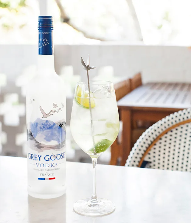 Grey Goose, St-Germain elderflower liqueur, wedges of fresh lime and soda.
