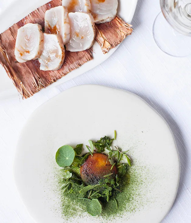 Served with egg yolk and sea lettuce.