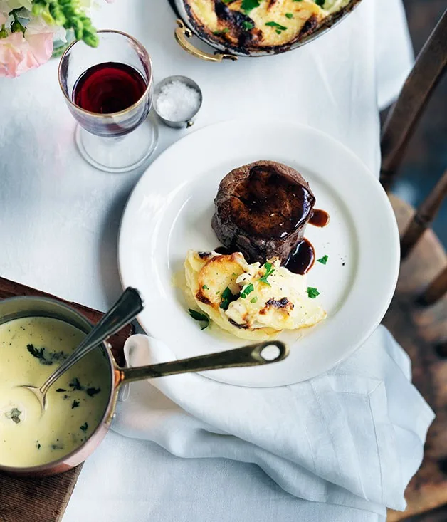 Pavé de boeuf with roquefort sauce and gratin dauphinoise