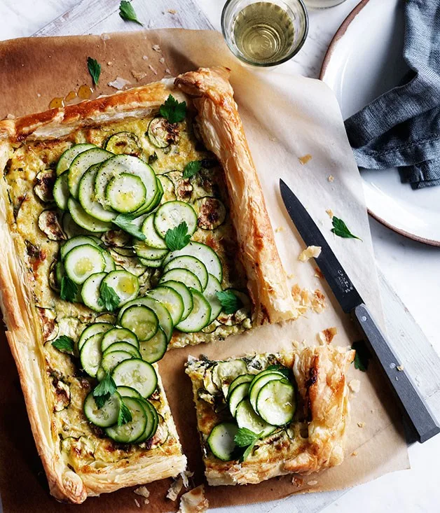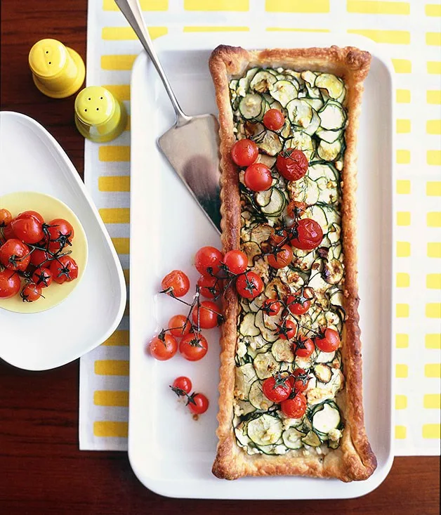 Zucchini and feta tart with roasted cherry tomatoes