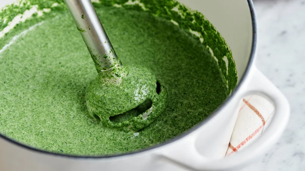 For creamed spinach, place cream in a small saucepan and bring to a gentle simmer over very low heat. Simmer until reduced by half (15 minutes). Heat butter in a saucepan over medium heat. Add onion and cook, stirring occasionally, until softened (10 minutes). Add chicken stock and cook, stirring occasionally, until onion is tender (5 minutes). Add spinach and cook, covered, until just wilted. Stir to combine. Strain off half the liquid from pan. Blend with a hand-held blender until almost smooth. Add cream (you may not need it all) and blend until smooth. Season to taste and set aside.