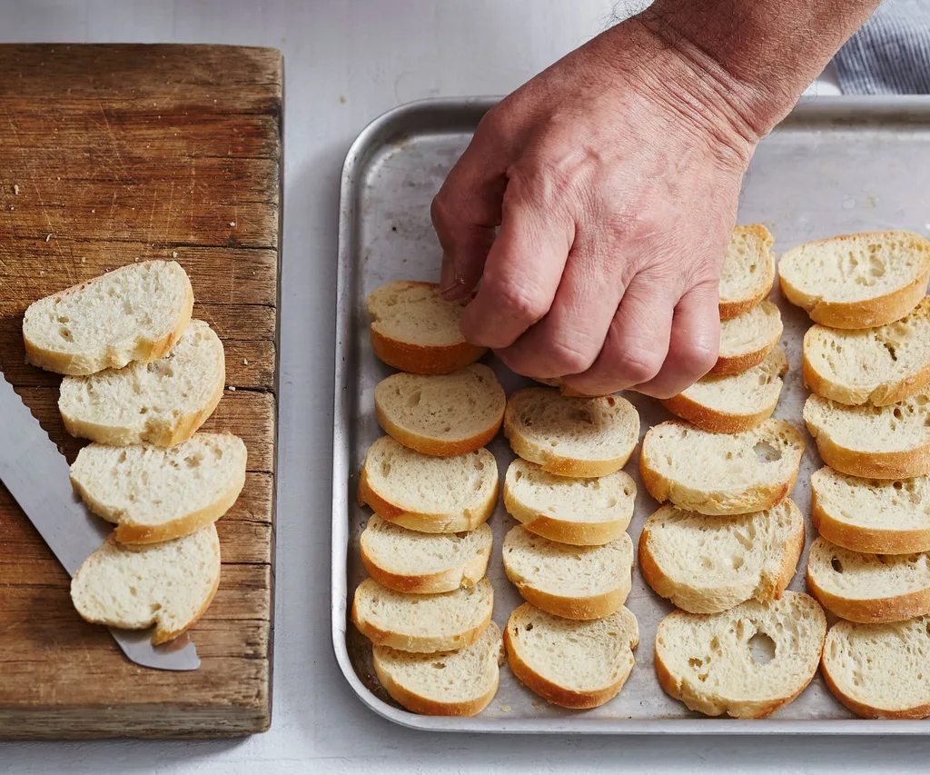 The croûtons call for the simplest of baguettes (not sourdough, which becomes hard when oven-dried) and, finally, plenty of freshly chopped parsley.