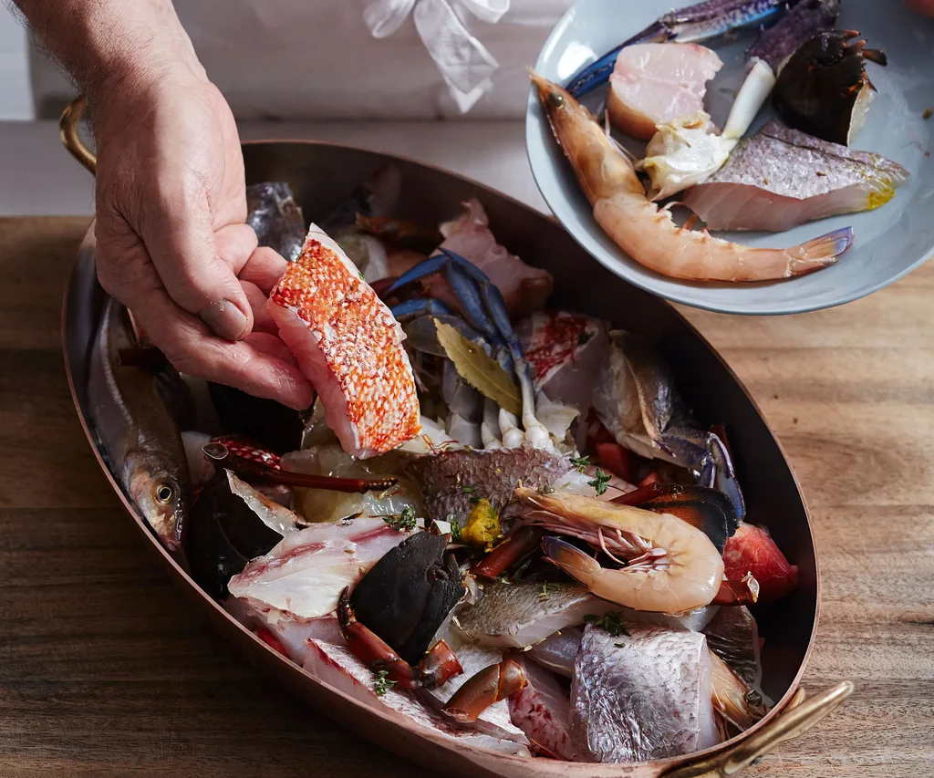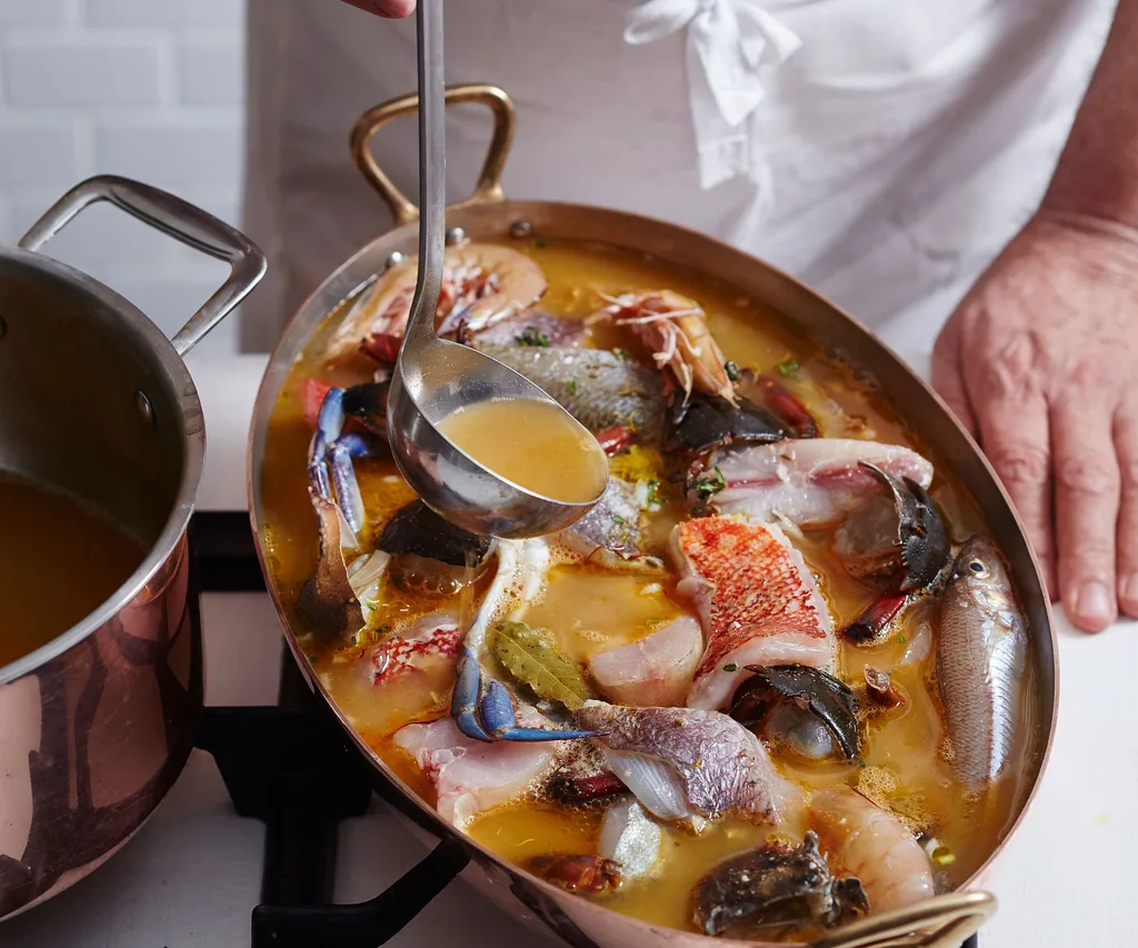 He would start the day before by making a full-flavoured Provençal fish soup using much the same fish and vegetables that would go in the final dish.