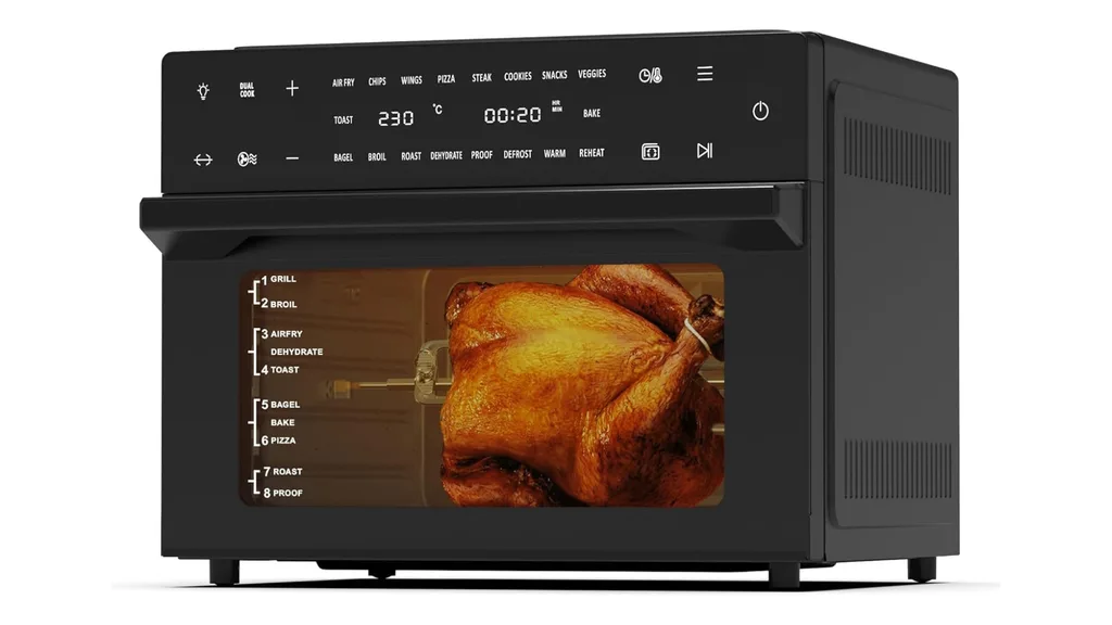 This 30-litre multifunctional air fryer is the ultimate beast in quick and easy cooking. Beneficial for homes without ovens, this versatile air fryer comes with dual-layer heating and circulating turbo air for fast, crispy and delicious meals all round. With plenty of room for even a full-sized rotisserie chicken, the oven has capacity to accommodate for family-sized meals while delivering maximum flavour.