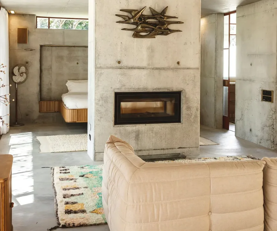 Designed to “curate sensory immersion”, Ground House 107R is a concrete stay ethereally nestled in the hinterland of Tintenbar. Featuring a curving jade shower, hearted magnesium soak tank and an indoor fireplace for winter heating – plus the option for an in-stay massage therapist and yoga instructor to be present – this conceptual getaway is as luxe as it gets.