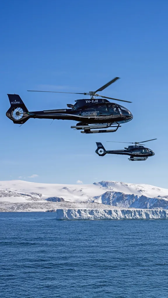 As the only ship to offer twin-engine helicopters in this region, Scenic Eclipse II provides exclusive access to locations others can’t visit in East Antarctica. On the Mawson’s Antarctica voyage in December 2025, guests can enjoy an included flightseeing tour to visit Mawson’s Huts, which is inaccessible from the coastline.