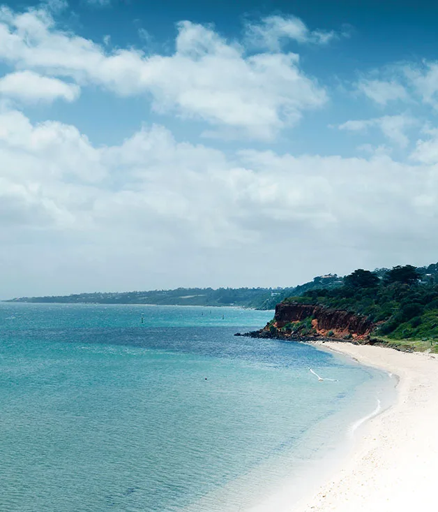 The Mornington Peninsula doesn’t guard its treasures jealously. The moment you arrive, its charms are spread before you, there to be savoured. Its virtues are as varied as they are magnetic: bay and ocean beaches, rugged sea cliffs, fertile farmland thick with grapevines and cherry orchards, tomato and strawberry fields.
